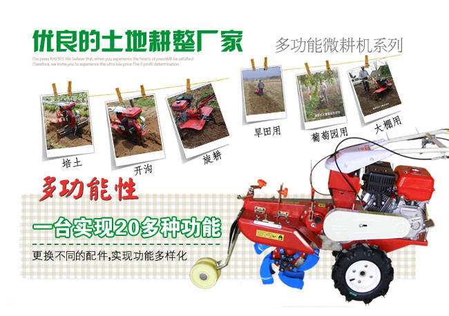 開溝,起壟,培土是埋藤多功能微耕機標準功能,其它功能需加獨立配件: