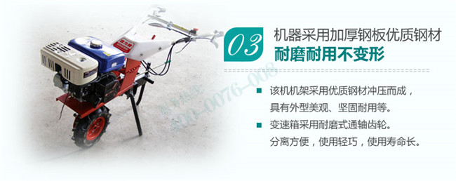 6.簡單合理的支稱,在使用單行播種,施肥,單鏵耘地時,支稱下放,整機能夠水平放置。方便添加種子,化肥。實現(xiàn)一人操作。