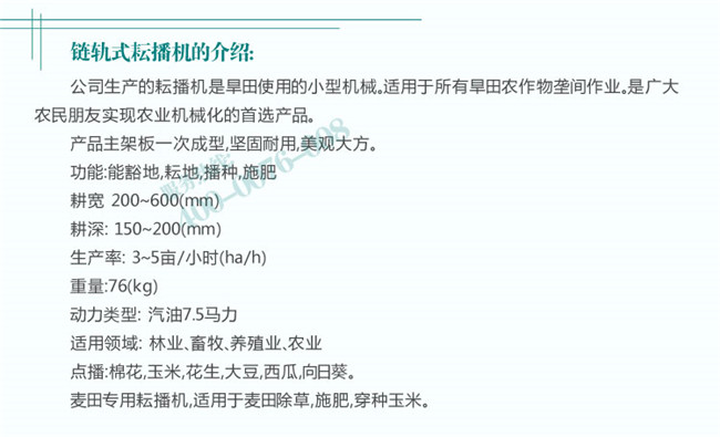 1.施肥播種:該播種盒耐磨,耐腐蝕,施肥播種時可更換內(nèi)心,適應各種化肥種子的播量,播種量5—20斤/畝,施肥量10—80斤/畝,可適應大田棉花、玉米施肥播種。